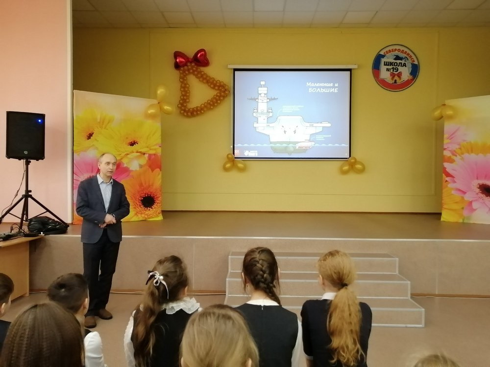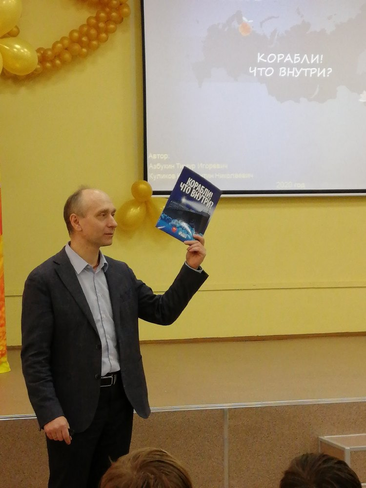 В рамках проведения Дня Российской науки, наша школа принимала в своих стенах генерального директора Научно-исследовательского проектно-технологического бюро «Онега» Куликова Константина Николаевича, который провел тематические занятия для обучающихся 5-х классов и представил книгу "Корабли! Что внутри?".