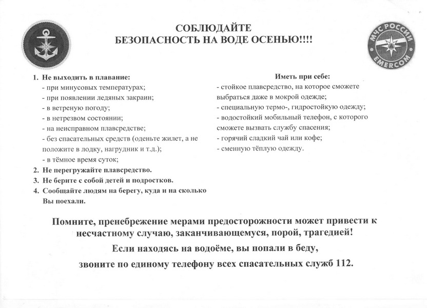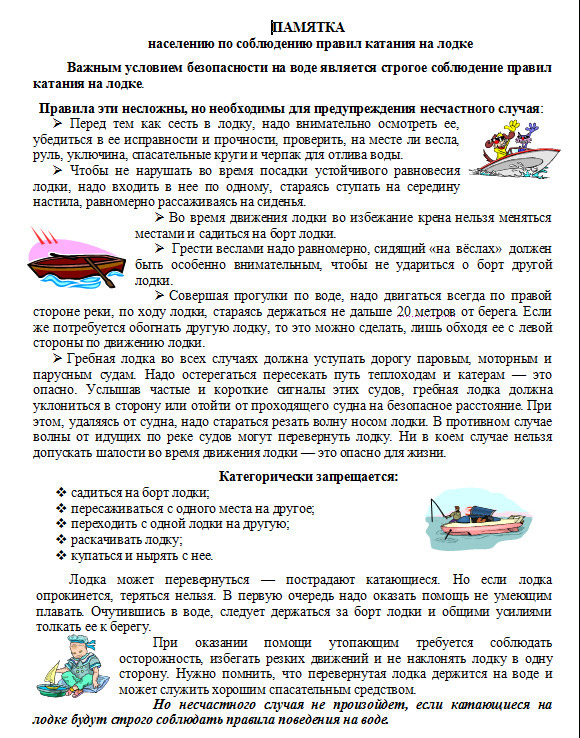 Большинство несчастных случаев на воде происходит не по трагическому стечению обстоятельств, а в результате несоблюдения элементарных правил безопасности. Лучший способ избежать беды - это знать и строго выполнять меры безопасности. Любой водоем – это зона повышенной опасности в любое время года и неосторожное поведение на воде может привести к неприятным, а порой и трагическим последствиям. Смертельной ловушкой могут стать и искусственные водоемы: котлованы, сливные ямы, канавы. Об этом нужно помнить всегда.