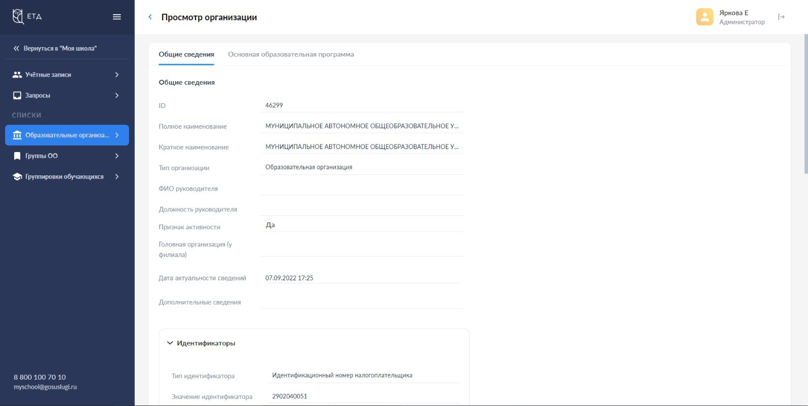 Личный кабинет «МАОУ СОШ № 19» во «ФГИС Моя школа»